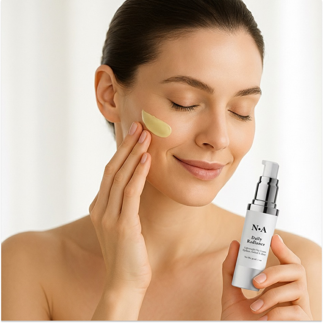 Your day cream is more than a final step; it is your skin's most trusted ally. The N•A Daily Radiance is an architectural masterpiece of hydration and protection, meticulously formulated to be the guardian of your skin's vitality from morning to night.
