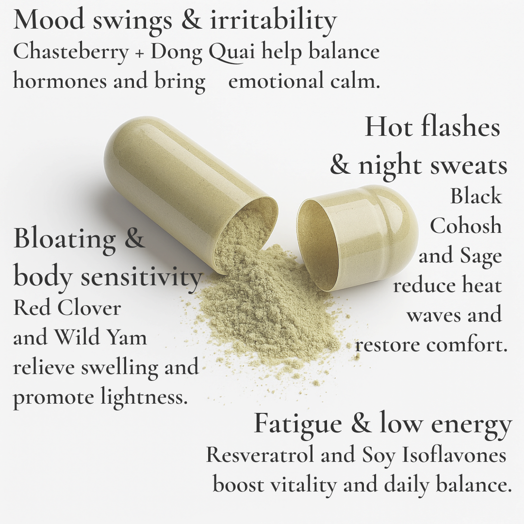 Our formula is a curated blend of traditional botanicals and potent plant-based compounds, each selected for its celebrated role in supporting feminine health. We believe in nurturing the body's innate wisdom, providing the tools it needs to find its own perfect equilibrium.